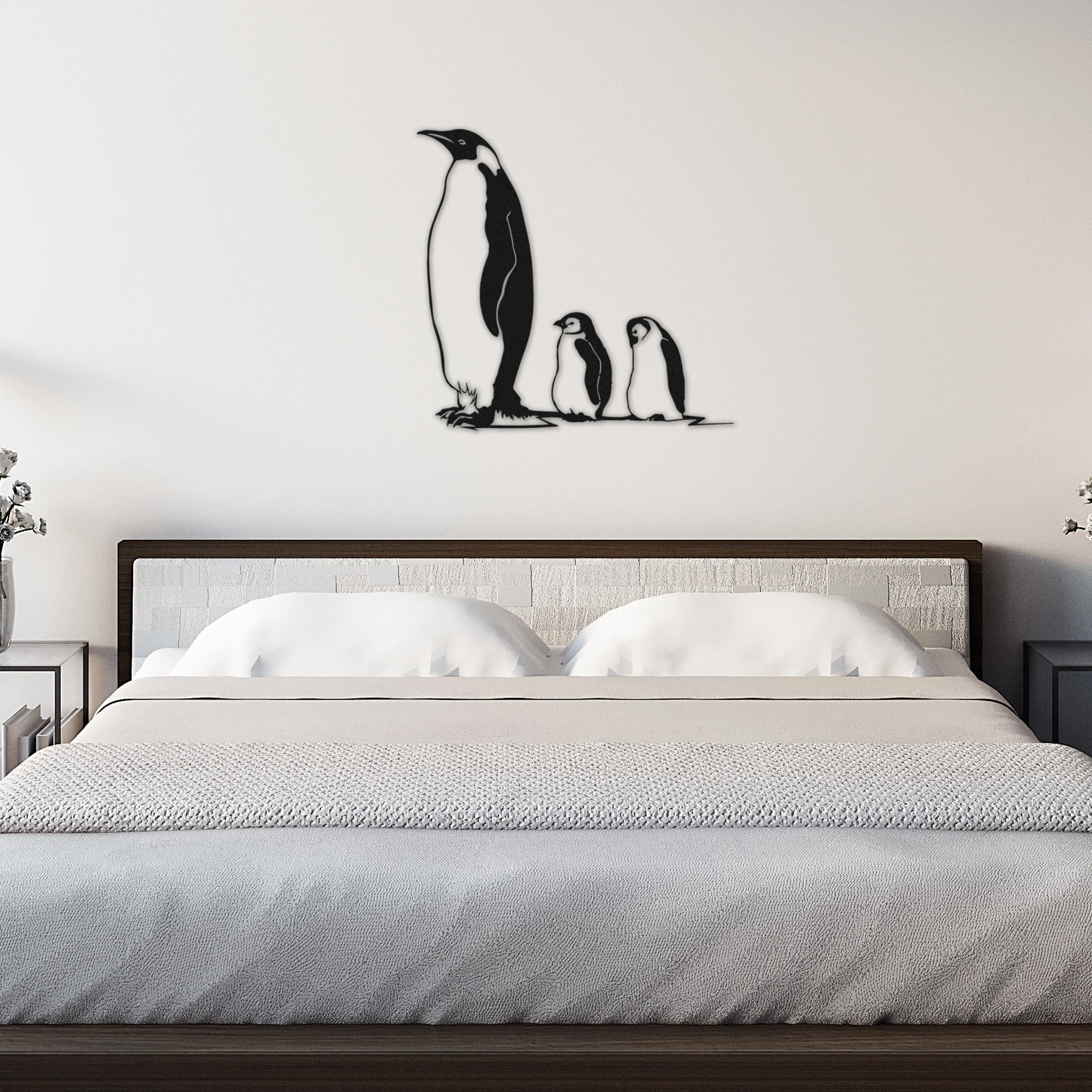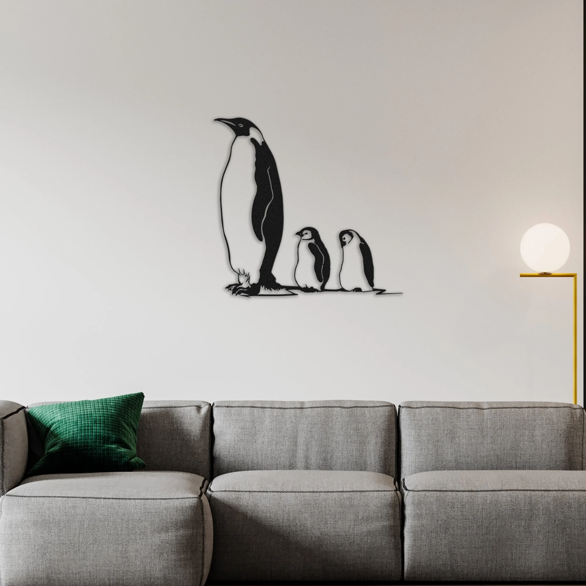 Bring the peaceful beauty and sense of family from the wild into your living space with this charming artwork. The image of a proud adult penguin standing beside two adorable chicks adds a warm and stylish touch to any room.